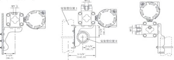 變送器的安裝方式有三類:一是借助于多種結構的安裝支架(圖A~C ),獨立安裝于測量對象之外,適用于DP、HP、DR、DP 、GP和AP型;