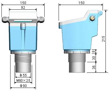 三、外型安裝尺寸(探頭尺寸會根據(jù)換能器量程的不同而有所改變,若有不同會預(yù)先告知)