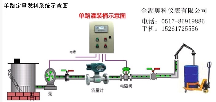 江蘇奧科儀表有限公司提供本方案主要根據流量計反饋給定量控制儀的脈沖流量信號,當流量累計流量達到設定的數值(定量值),定量控制儀會給電磁閥門或泵一個開關信號,已達到對閥門、泵的啟動和關閉控制。實現對加料 的自動和手動控制。該系統精度高,操作簡單,可現場校準目前很多企業都會用到或者是都需要改進的項目之一,它把具有操作簡便易學,顯示直觀,手動控制流量或自動控制流量相結合等特點。特別適用于油田摻油、摻水、摻藥、配料、定量注水及各種液體的定量控制。目前一些現在仍采用人工操作罐裝/打料,同時也不想投入太多成本,就想提高工作效率的企業建議采用本系統。
